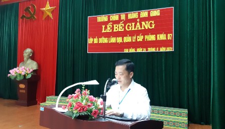 Ngày 24/6/2021, Trường Chính trị Hoàng Đình Giong tổ chức Lễ Bế giảng lớp Bồi dưỡng lãnh đạo, quản lý cấp phòng khóa 07 cho 58 học viên. Dự Lễ bế giảng có đồng chí Trịnh Thị Ánh Hoa- Bí thư Đảng ủy, Hiệu trưởng Nhà trường, Đồng chí Nông Hoàng Hùng- Phó Bí thư Đảng ủy, Phó Hiệu trưởng; đồng chí Nông Văn Tiềm- Phó Hiệu trưởng; đại diện lãnh đạo các khoa, phòng của Nhà trường và đông đủ học viên của lớp học.