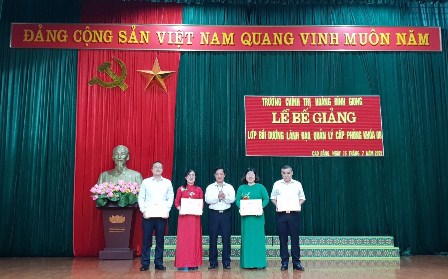 Ngày 16/7/2021, Trường Chính trị Hoàng Đình Giong tổ chức Lễ Bế giảng lớp Bồi dưỡng lãnh đạo, quản lý cấp phòng khóa 08 cho 75 học viên, là trưởng, phó các phòng cấp sở và tương đương của các cơ quan, đơn vị trên địa bàn tỉnh Cao Bằng. Dự Lễ Bế giảng có đồng chí Nông Hoàng Hùng - Phó Bí thư Đảng ủy, Phó Hiệu trưởng; các đồng chí đại diện lãnh đạo các khoa, phòng của Nhà trường.