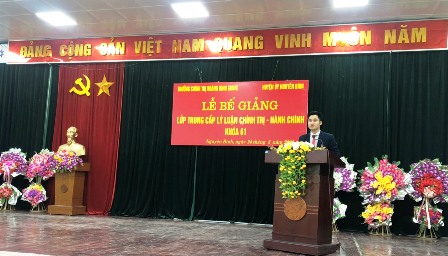Chiều 24 tháng 3 năm 2020, tại Hội trường Huyện ủy - Ủy ban nhân dân huyện Nguyên Bình, Trường Chính trị Hoàng Đình Giong tỉnh Cao Bằng phối hợp với Huyện ủy Nguyên Bình tổ chức Lễ bế giảng lớp Trung cấp lý luận chính trị - hành chính khóa 61 (hệ không tập trung) cho 73 học viên là cán bộ, công chức, viên chức các ban, phòng; cán bộ, công chức các xã, thị trấn và hiệu trưởng, phó hiệu trưởng, giáo viên các cấp trên địa bàn huyện.