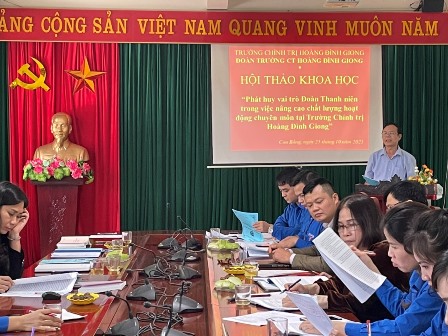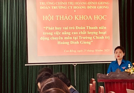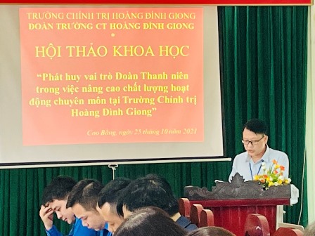 Ngày 25/10/2021, Đoàn thanh niên cộng sản Hồ Chí Minh Trường Chính trị Hoàng Đình Giong tổ chức Hội thảo khoa học với chủ đề “Phát huy vai trò đoàn thanh niên trong việc nâng cao chất lượng hoạt động chuyên môn tại Trường Chính trị Hoàng Đình Giong”. Tham dự Hội thảo khoa học có đồng chí Nông Văn Tiềm- Phó Hiệu trưởng, Phó Chủ tịch Hội đồng khoa học; thành viên trong Hội đồng khoa học; các đồng chí là giảng viên Nhà trường và đông đủ đoàn viên thanh niên Nhà trường.