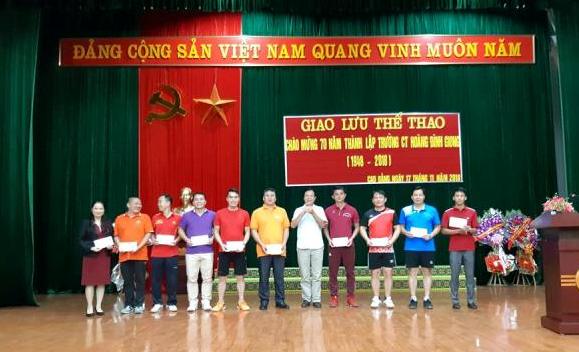 Đồng chí Bế Dũng, Hiệu trưởng trao giải nhất, nhì, ba cho các đội