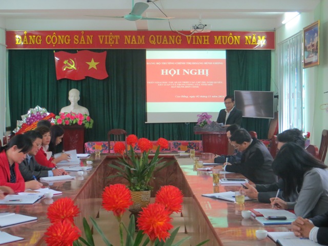 Đồng chí Nông Văn Tiềm, Phó Bí thư Đảng ủy, Phó Hiệu trưởng Nhà trường đã quán triệt những nội dung cơ bản như: Chỉ thị số 08-CT/TU ngày 9/5/2016 của Ban Thường vụ Tỉnh ủy về tiếp tục đẩy mạnh, nâng cao chất lượng, hiệu quả xây dựng và thực hiện Quy chế dân chủ ở cơ sở; Chỉ thị số 10-CT/TU, ngày 01/7/2016 của Ban Thường vụ Tỉnh ủy về lãnh đạo Đại hội Hội Cựu chiến binh các cấp tiến tới Đại hội Hội Cựu chiến binh tỉnh Cao Bằng lần thứ VI (nhiệm kỳ 2017 - 2022); Hướng dẫn số 08-HD/ĐUK ngày 20/10/2016 của Đảng ủy Khối các cơ quan tỉnh, hướng dẫn xây dựng kế hoạch hành động cá nhân thực hiện nghị quyết Đại hội XII của Đảng, Nghị quyết Đại hội XVIII của Đảng bộ tỉnh và Nghị quyết Đại hội XII của Đảng bộ Khối các cơ quan tỉnh nhiệm kỳ 2015-2020.