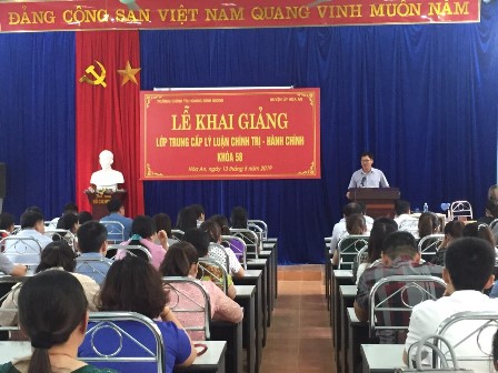 Thực hiện Kế hoạch đào tạo, bồi dưỡng năm 2019, ngày 13/5/2019 tại Trung tâm Bồi dưỡng chính trị huyện Hòa An, Trường Chính trị Hoàng Đình Giong tỉnh Cao Bằng phối hợp với Huyện ủy Hòa An tổ chức khai giảng Lớp Trung cấp lý luận chính trị - hành chính khóa 58 cho 70 học viên là cán bộ, công chức, viên chức các phòng, ban cấp huyện và các xã, thị trấn trên địa bàn huyện.