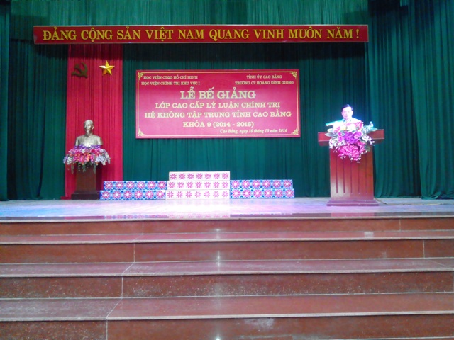 Sáng ngày 10/10/2016, Học viện Chính trị khu vực I phối hợp với Trường Chính trị Hoàng Đình Giong long trọng tổ chức lễ khai giảng lớp Cao cấp lý luận chính trị khóa 10 năm học 2016 - 2018 tại tỉnh Cao Bằng, hệ không tập trung.