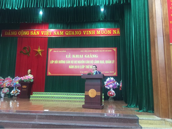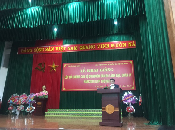 Sáng 26 tháng 03 năm 2019, tại Trường Chính trị Hoàng Đình Giong tỉnh Cao Bằng, Tỉnh ủy Cao Bằng phối hợp với Học viện Chính trị quốc gia Hồ Chí Minh tổ chức lễ khai giảng lớp bồi dưỡng nguồn cán bộ lãnh đạo, quản lý cấp tỉnh, cấp huyện nhiệm kỳ 2020-2025. Lớp thứ 2 từ ngày 26/3/2019 đến ngày 19/4/2019.