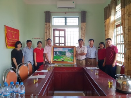Đồng chí Nông Văn Tiềm- Phó Hiệu trưởng Nhà trường tặng quà lưu niệm cho xã