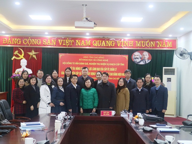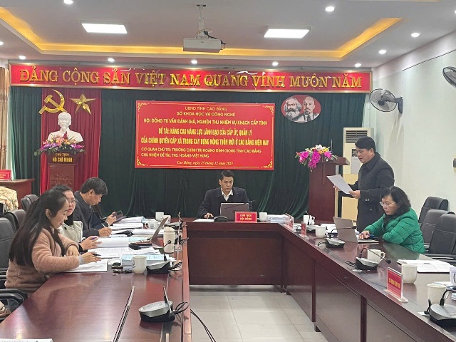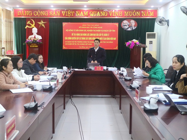 Sáng ngày 25/12/2024, tại Sở Khoa học và Công nghệ tỉnh Cao Bằng, Hội đồng tư vấn đánh giá, nghiệm thu nhiệm vụ khoa học công nghệ cấp tỉnh đã nghiệm thu đề tài khoa học cấp tỉnh “Nâng cao năng lực lãnh đạo của cấp ủy, quản lý của chính quyền cấp xã trong xây dựng nông thôn mới ở Cao Bằng hiện nay” do ThS. Hoàng Việt Hưng, Phó Hiệu trưởng Trường Chính trị Hoàng Đình Giong làm chủ nhiệm. Tham dự có đồng chí Nông Thành Thân, Phó Giám đốc Sở Khoa học và Công nghệ, Chủ tịch Hội đồng nghiệm thu; thành viên Hội đồng nghiệm thu; chủ nhiệm đề tài và các thành viên tham gia đề tài.