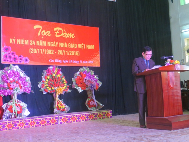 Đồng chí Đàm Thiện Cầu – Phó Hiệu trưởng đọc diễn văn kỷ niệm 34 năm ngày Nhà giáo Việt Nam