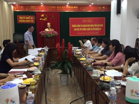 Trong chương trình làm việc tại các trường, Đoàn công tác đã được nghe lãnh đạo các Trường Chính trị và Trung tâm Bồi dưỡng Chính trị cấp huyện báo cáo khái quát kết quả thực hiện nhiệm vụ và công tác xây dựng đội ngũ giảng viên, giảng viên kiêm nhiệm.