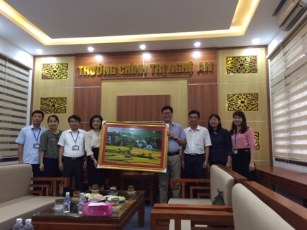Đồng chí Tô Vũ Ninh, Phó Hiệu trưởng tặng quà lưu niệm cho Trường Chính trị tỉnh Nghệ An