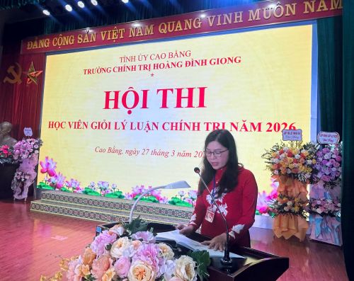 Ngày 27/3/2026, Trường Chính trị Hoàng Đình Giong tổ chức Hội thi học viên giỏi lý luận chính trị năm 2026. Tham dự có đồng chí Bế Dũng, Phó Bí thư Đảng ủy các cơ quan Đảng tỉnh; lãnh đạo Ban Tổ chức Tỉnh ủy, Ban Tuyên giáo và Dân vận Tỉnh ủy, Công an tỉnh; cùng các đồng chí trong Đảng ủy, Ban Giám hiệu, lãnh đạo các khoa, phòng, giảng viên và đông đảo học viên của Nhà trường.