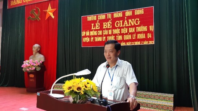 Ngày 23 tháng 3 năm 2023, Trường Chính trị Hoàng Đình Giong tổ chức Lễ Bế giảng Lớp Bồi dưỡng, cập nhật kiến thức cho cán bộ thuộc diện ban thường vụ huyện uỷ, thành uỷ thuộc tỉnh và tương đương quản lý khoá 04. Tham dự Lễ bế giảng có đại diện Ban Giám hiệu Trường Chính trị Hoàng Đình Giong, các trưởng, phó khoa phòng và các học viên lớp học.