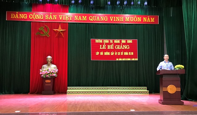 Phát biểu tại Lễ Bế giảng, đồng chí Hoàng Việt Hưng, Phó Hiệu trưởng Nhà trường đánh giá cao kết quả mà lớp học đã đạt được, đồng thời đề nghị học viên phải thường xuyên bồi dưỡng, cập nhật kiến thức, kỹ năng và kinh nghiệm mới về khoa học lãnh đạo, quản lý, từ đó hình thành, nâng cao phẩm chất chính trị; nâng cao năng lực tư duy lý luận, năng lực tổ chức thực tiễn. Tiếp tục học tập ngay từ thực tiễn công việc hàng ngày; học từ việc tổng kết thực tiễn, tổng kết những mô hình mới, những cách làm hay. Tiếp tục đẩy mạnh xây dựng phong cách lãnh đạo của cấp ủy viên cơ sở theo phong cách Hồ Chí Minh. Phát huy tốt nhất những kiến thức bổ ích về lý luận và thực tiễn để nâng cao năng lực của mình khi trở về cương vị công tác, góp phần thực hiện thắng lợi nhiệm vụ chính trị của cơ quan, đơn vị./.