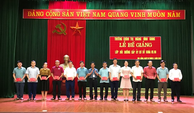Ngày 08/6/2023, Trường Chính trị Hoàng Đình Giong tổ chức Lễ Bế giảng lớp Bồi dưỡng cấp uỷ cơ sở khoá 05, 06. Tham dự Lễ Bế giảng có đồng chí Trịnh Thị Ánh Hoa, Bí thư Đảng ủy, Hiệu trưởng; các đồng chí trong Ban Giám hiệu, lãnh đạo các khoa, phòng của Nhà trường và học viên lớp Bồi dưỡng cấp uỷ cơ sở khoá 05, khoá 06.