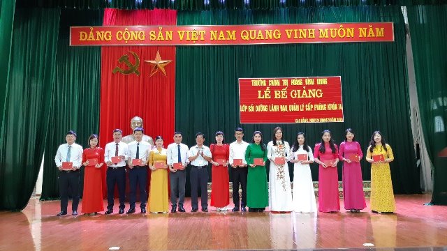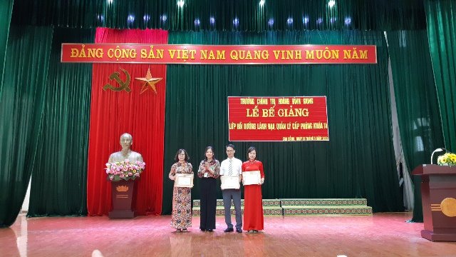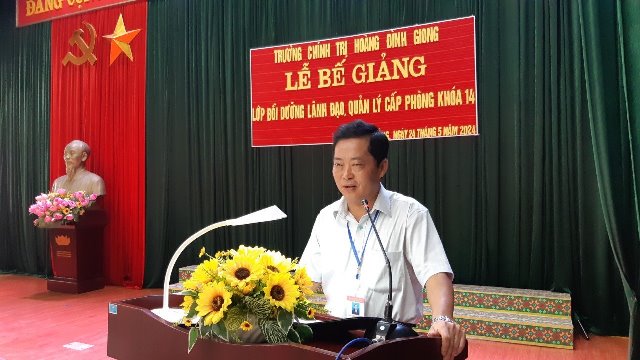 Ngày 24/5/2024, Trường Chính trị Hoàng Đình Giong tổ chức Lễ Bế giảng lớp Bồi dưỡng đối với lãnh đạo, quản lý cấp phòng và tương đương khóa 14 cho 46 học viên (học viên nam 22 đồng chí, chiếm 47,83; học viên nữ 24 đồng chí, chiếm 52,17%). Dự Lễ bế giảng có các đồng chí Đảng ủy, Ban Giám hiệu, đại diện lãnh đạo các khoa, phòng của Nhà trường.