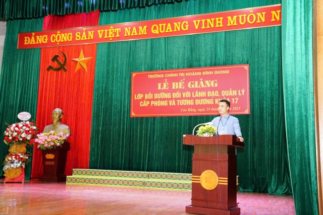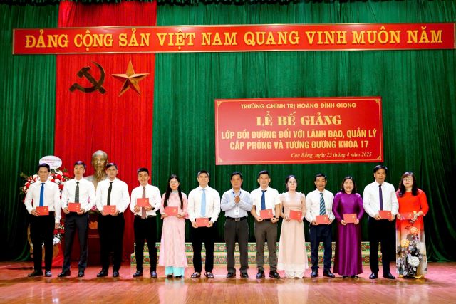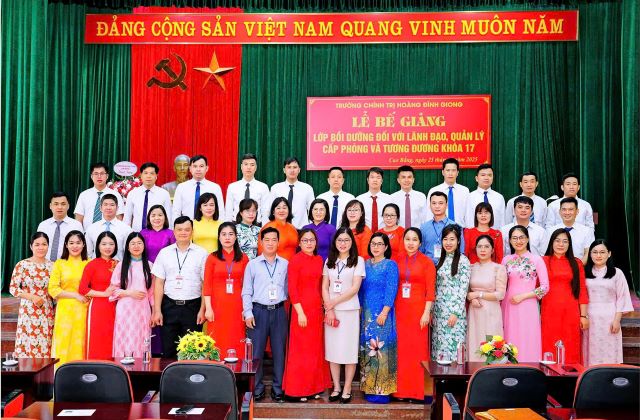 Ngày 25/04/2025, Trường Chính trị Hoàng Đình Giong tổ chức Lễ Bế giảng lớp Bồi dưỡng đối với lãnh đạo, quản lý cấp phòng và tương đương khoá 17. Tham dự Lễ Bế giảng, có đồng chí Trịnh Thị Ánh Hoa - Bí thư Đảng uỷ, Hiệu trưởng Nhà Trường; các đồng chí trong Ban Giám hiệu; đại diện lãnh đạo các khoa, phòng, giảng viên Nhà trường và học viên của lớp học.