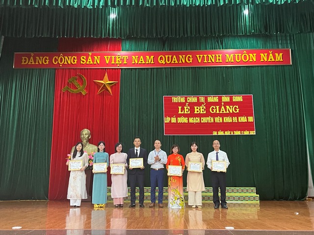 Ngày 14/11/2022, Trường Chính trị Hoàng Đình Giong tổ chức bế giảng lớp Bồi dưỡng ngạch chuyên viên khóa 99, khóa 100. Đến dự có đồng chí Trịnh Thị Ánh Hoa, Bí thư Đảng ủy, Hiệu trưởng Nhà trường; đồng chí Hoàng Việt Hưng, Phó Hiệu trưởng Nhà trường; các đồng chí đại diện lãnh đạo các phòng, khoa chuyên môn và học viên của hai lớp học.