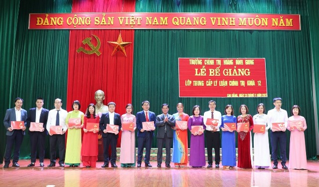 Trên cơ sở đánh giá tinh thần thái độ, ý thức trách nhiệm trong học tập và rèn luyện, kết quả của khóa học, kết thúc khóa học 71/71 học viên của lớp Trung cấp lý luận chính trị khóa 12 đủ điều kiện cấp Bằng tốt nghiệp. Trong đó, kết quả xếp loại học tập, cụ thể: Giỏi 14 học viên; Khá 55 học viên; Trung bình 02 học viên. 07 học viên được nhận giấy khen của Hiệu trưởng Trường Chính trị Hoàng Đình Giong vì có nhiều thành tích trong học tập và rèn luyện toàn khóa học, đạt danh hiệu “Học tập tốt, rèn luyện tốt”.