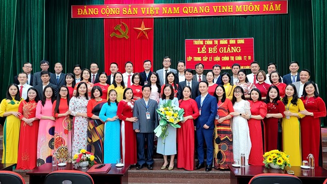 Từ kết quả học tập, rèn luyện của học viên, Nhà trường đã xét công nhận và cấp bằng tốt nghiệp Trung cấp lý luận chính trị cho 100 học viên; trong đó: loại giỏi có 16 học viên; loại khá có 84 học viên; 10 học viên được nhận giấy khen của Hiệu trưởng Trường Chính trị Hoàng Đình Giong vì có nhiều thành tích trong học tập và rèn luyện toàn khóa học.