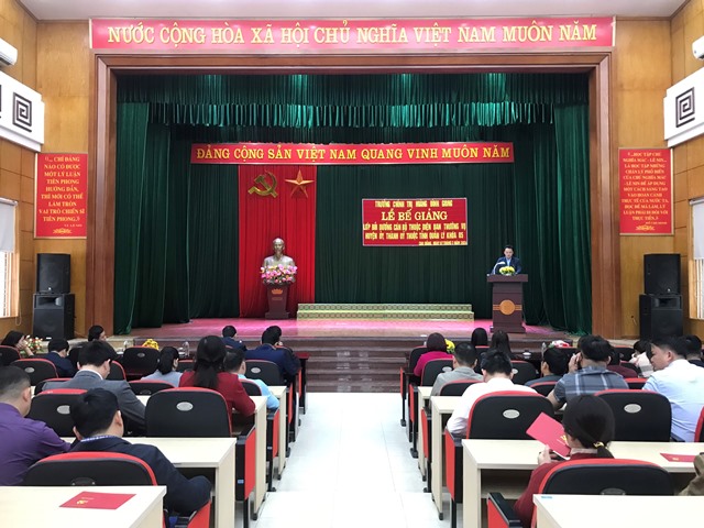 Ngày 07/3/2024, Trường Chính trị Hoàng Đình Giong tổ chức Lễ Bế giảng lớp Bồi dưỡng cập nhật kiến thức cho cán bộ thuộc diện ban thường vụ huyện ủy, thành ủy và tương đương quản lý (đối tượng 4) khóa 5. Dự Lễ Bế giảng có đồng chí Nông Hoàng Hùng, Phó Bí thư Đảng ủy, Phó Hiệu trưởng; các đồng chí trong Ban Giám hiệu; lãnh đạo các khoa, phòng và 63 học viên lớp học.