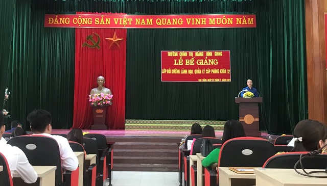 Đồng chí Hoàng Việt Hưng, Phó Hiệu trưởng phát biểu bế giảng lớp học
