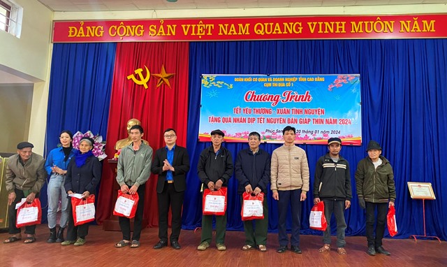 Thực hiện Chương trình công tác đoàn và phong trào thanh niên năm 2024, sáng ngày 20/01/2024, Đoàn Trường Chính trị Hoàng Đình Giong đã tham gia Chương trình “Tết yêu thương - Xuân tình nguyện năm 2024” tại xã Phúc Sen, huyện Quảng Hòa do Cụm thi đua số 1, Đoàn Khối cơ quan và doanh nghiệp tỉnh Cao Bằng tổ chức.