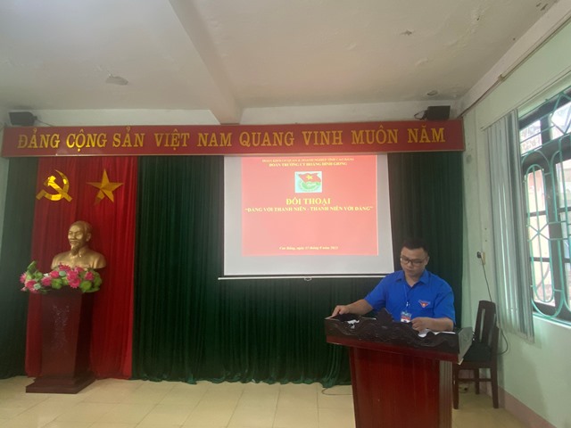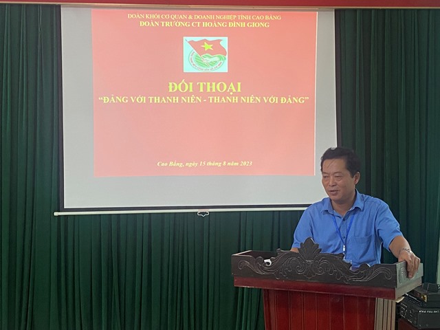 Thực hiện Nghị quyết Đại hội Đoàn TNCS Hồ Chí Minh Trường Chính trị Hoàng Đình Giong nhiệm kỳ 2022-2027; chương trình công tác Đoàn năm 2023; sáng ngày 15/8/2023 Đoàn trường Chính trị Hoàng Đình Giong tổ chức đối thoại “Đảng với thanh niên – Thanh niên với Đảng”. Tham dự buổi đối thoại, về phía lãnh đạo Đảng ủy, Ban Giám hiệu Nhà trường có sự tham dự của đồng chí Nông Hoàng Hùng, Phó Bí thư Đảng ủy, Phó hiệu trưởng; đồng chí Hoàng Việt Hưng, Phó Hiệu trưởng; về phía Đoàn Đoàn khối cơ quan và doanh nghiệp tỉnh có sự tham dự của đồng chí Nông Văn Tô, Bí thư Đoàn khối.