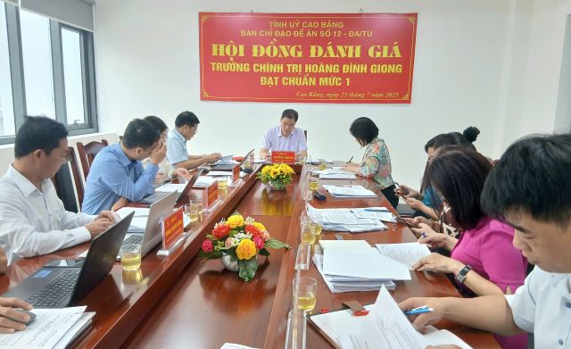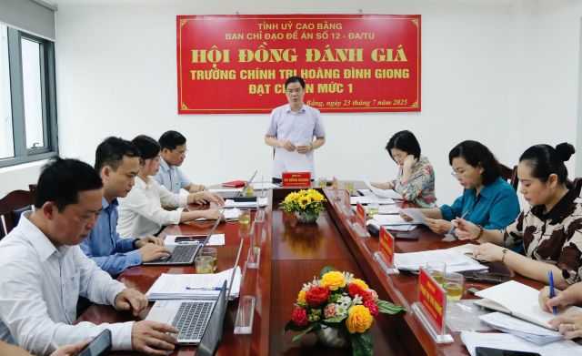 Ngày 23/7/2025, tại Trường Chính trị Hoàng Đình Giong tổ chức họp Hội đồng đánh giá cấp tỉnh Trường Chính trị Hoàng Đình Giong đạt chuẩn mức 1. Đồng chí Vũ Hồng Quang - Phó Bí thư Thường trực Tỉnh ủy Cao Bằng, Chủ tịch Hội đồng chủ trì. Dự cuộc họp có các đồng chí Ủy viên Ban Thường vụ Tỉnh ủy, lãnh đạo các sở, ban, ngành thuộc Hội đồng đánh giá.