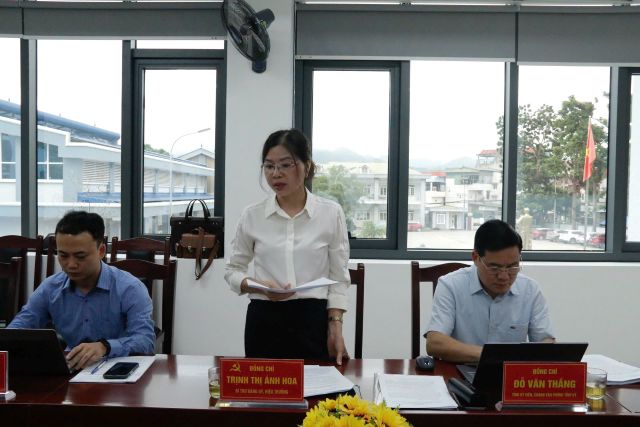 Đồng chí Nguyễn Lâm Thị Tú Anh - Tỉnh uỷ viên, Giám đốc Sở Nội vụ, thành viên Hội đồng đánh giá phát biểu