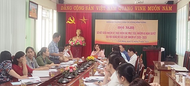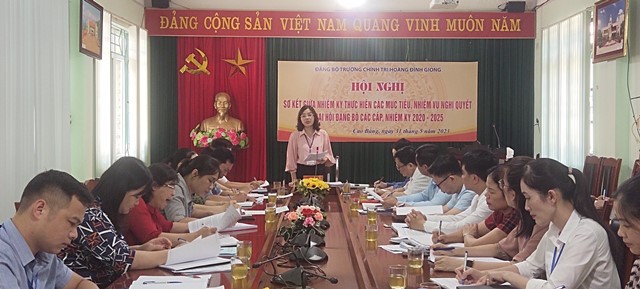 Thực hiện Kế hoạch số 100-KH/ĐUK ngày 05/5/2023 của Đảng uỷ Khối cơ quan và doanh nghiệp tỉnh Cao Bằng, ngày 31/5/2023, Đảng ủy Trường Chính trị Hoàng Đình Giong đã tổ chức Hội nghị sơ kết giữa nhiệm kỳ thực hiện các mục tiêu, nhiệm vụ Nghị quyết Đại hội Đảng các cấp, nhiệm kỳ 2020 - 2025. Dự Hội nghị, lãnh đạo Đảng ủy khối có đồng chí Vũ Bá Phương, Phó Bí thư Đảng ủy; lãnh đạo Nhà trường có đồng chí Trịnh Thị Ánh Hoa, Bí Thư Đảng ủy, Hiệu trưởng; đồng chí Nông Hoàng Hùng, Phó Bí thư Đảng ủy, Phó Hiệu trưởng.