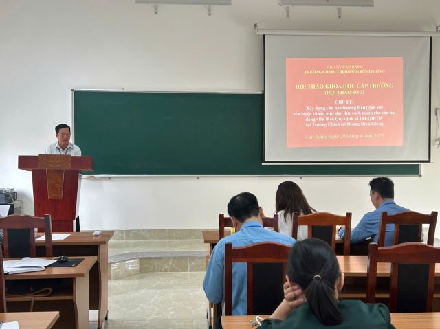 Hội thảo khoa học cấp trường “Xây dựng văn hóa trường Đảng gắn với rèn luyện chuẩn mực đạo đức cách mạng cho cán bộ, đảng viên theo Quy định số 144-QĐ/TW tại Trường Chính trị Hoàng Đình Giong”