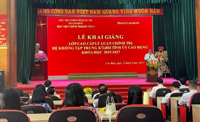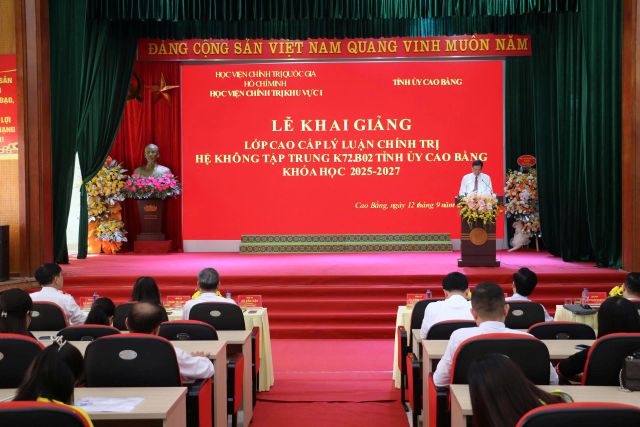 Sáng 12/9, tại Trường Chính trị Hoàng Đình Giong, Tỉnh ủy cao Bằng phối hợp với Học viện Chính trị Khu vực I - Học viện Chính trị Quốc gia Hồ Chí Minh tổ chức khai giảng lớp Cao cấp lý luận chính trị (CCLLCT) hệ không tập trung khóa K72.B02 khóa học 2025 - 2027.