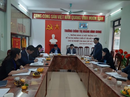 Sáng ngày 03/11/2021, Khoa Lý luận cơ sở, Trường Chính trị Hoàng Đình Giong tổ chức Hội thảo khoa học: “Vận dụng điểm mới trong văn kiện Đại hội XIII của Đảng vào giảng dạy các chuyên đề thuộc chương trình Trung cấp lý luận tại Trường Chính trị Hoàng Đình Giong”.