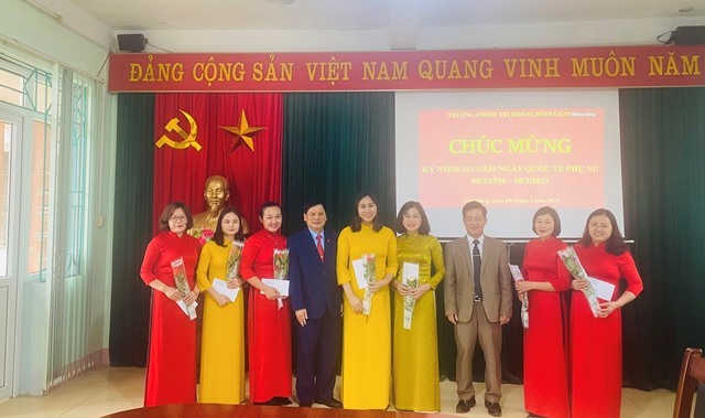 Thực hiện Công văn số 45/CĐVC ngày 13/02/2023 của Công đoàn viên chức về việc tổ chức các hoạt động kỷ niệm ngày Quốc tế phụ nữ (08/3), Khởi nghĩa Hai Bà Trưng và ngày Quốc tế Hạnh phúc (20/3) năm 2023, được sự nhất trí của Đảng uỷ, Ban Giám hiệu Nhà trường, chiều ngày 8/3/2023 Công đoàn Trường Chính trị Hoàng Đình Giong tổ chức gặp mặt, tặng quà nữ đoàn viên và giao lưu thể thao giữa Công đoàn với Đoàn Thanh niên Nhà trường.