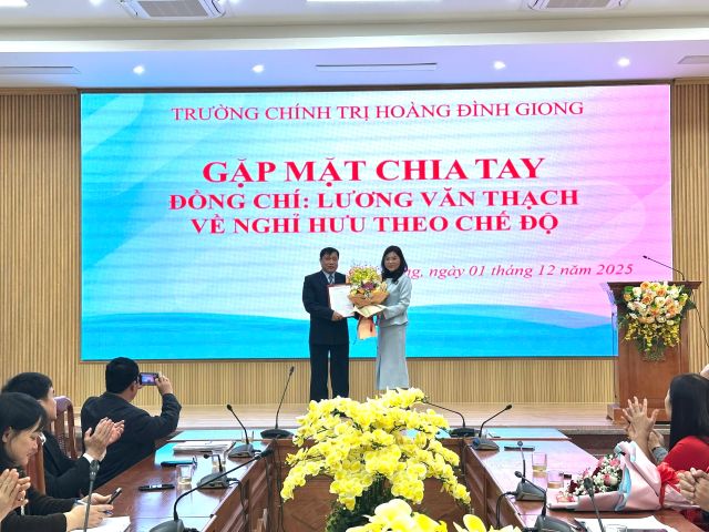 Chiều ngày 01/12/20225, Đảng bộ Trường Chính trị Hoàng Đình Giong tổ chức Lễ trao tặng huy hiệu 30 năm tuổi Đảng cho đảng viên Lương Văn Thạch, sinh hoạt tại Chi bộ Giảng dạy của Đảng bộ Trường Chính trị Hoàng Đình Giong. Đồng thời, tổ chức Trao tặng kỷ niệm chương “vì sự nghiệp kiểm tra của Đảng” cho đồng chí Trương Thị Phương - Phó chủ nhiệm Uỷ ban kiểm tra Đảng uỷ Trường Chính trị Hoàng Đình Giong. Đây là sự kiện có ý nghĩa chính trị, sâu sắc, thể hiện sự trân trọng của Đảng đối với đảng viên trong suốt quá trình rèn luyện, phấn đấu và cống hiến.