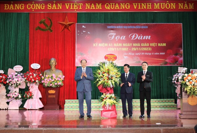 Ngày 20/11/2023, Trường Chính trị Hoàng Đình Giong tổ chức tọa đàm kỷ niệm 41 năm Ngày Nhà giáo Việt Nam (20/11/1982 - 20/11/2023). Dự buổi toạ đàm có đồng chí Hoàng Văn Thạch, Tỉnh ủy viên, Phó Chủ tịch HĐND tỉnh; lãnh đạo các cơ quan tham mưu giúp việc của Tỉnh ủy; lãnh đạo Mặt trận Tổ quốc Việt Nam tỉnh Cao Bằng và các tổ chức chính trị - xã hội; lãnh đạo các sở, ban, ngành, chính quyền địa phương phường Hòa Chung, báo, đài; các đồng chí nguyên lãnh đạo, giảng viên Nhà trường qua các thời kỳ; các đồng chí trong Đảng ủy, Ban Giám hiệu, toàn thể cán bộ, giảng viên Nhà trường và đại diện học viên các lớp đang học tập tại Trường.