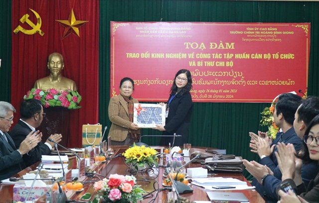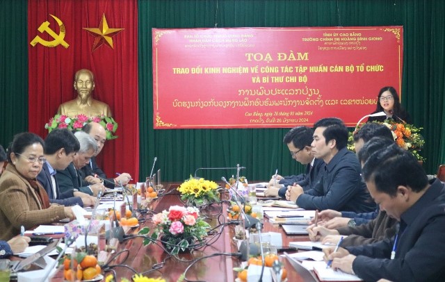 Thực hiện chương trình nghiên cứu thực tế, ngày 26/01/2024, Đoàn công tác Ban Tổ chức Trung ương Đảng Nhân dân Cách mạng Lào do đồng chí Budsadee THANAMUONG, Ủy viên Ban Chấp hành Trung ương Đảng, Phó trưởng Ban Tổ chức Trung ương Đảng Nhân dân Cách mạng Lào làm trưởng đoàn làm việc, trao đổi kinh nghiệm về công tác tập huấn cán bộ tổ chức và bí thư chi bộ trên địa bàn tỉnh Cao Bằng tại Trường chính trị Hoàng Đình Giong.