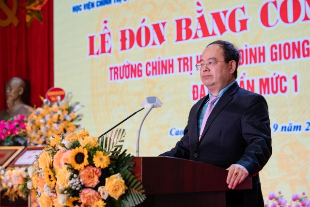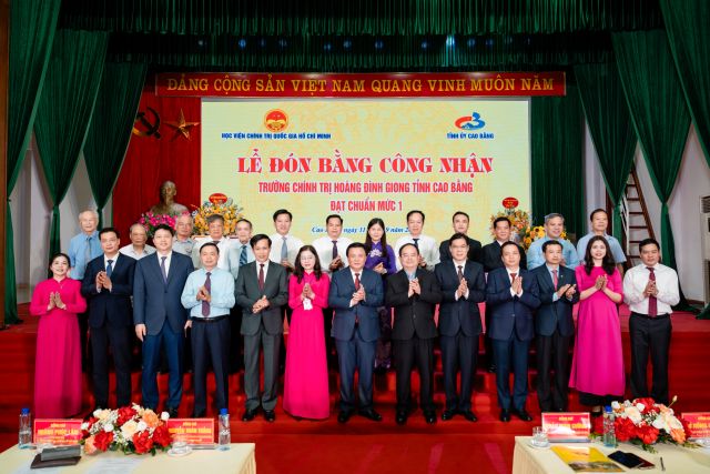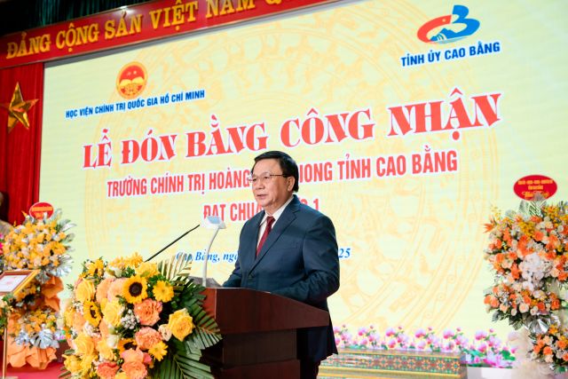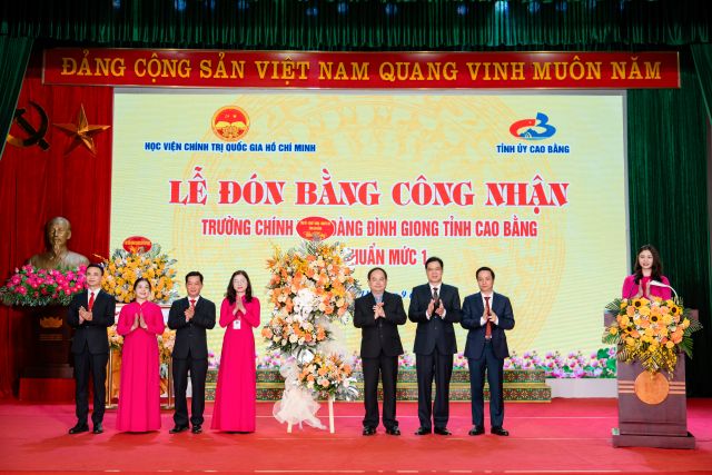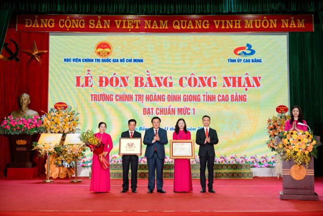 Chiều ngày 11/9/2025, tại Trường Chính trị Hoàng Đình Giong, Tỉnh ủy Cao Bằng phối hợp với Học viện Chính trị quốc gia Hồ Chí Minh tổ chức Lễ đón Bằng công nhận đạt chuẩn mức 1. Đây là sự kiện có ý nghĩa đặc biệt quan trọng, là mốc son đánh dấu chặng đường 77 năm xây dựng và phát triển của Trường.